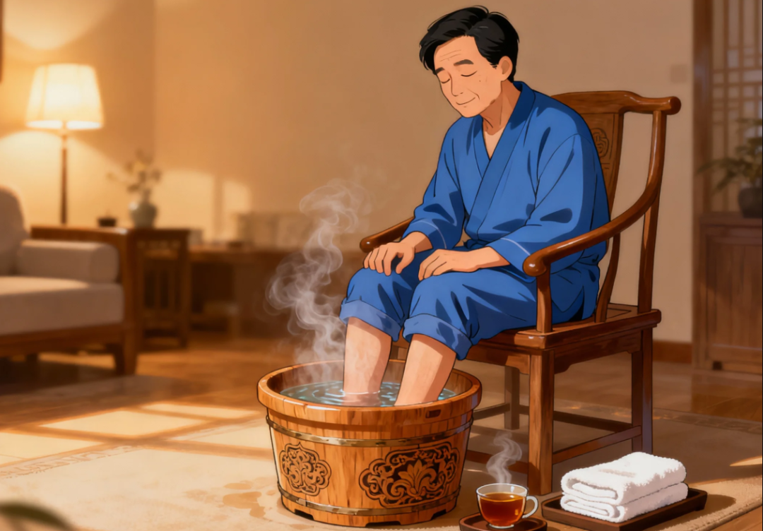 背为阳中之阳,穿一件保暖的背心或羽绒内胆,防止寒邪侵袭膀胱经和督脉。寒从脚下生,肾经起于足底,每晚用温水(非过热)泡脚至微微出汗,能刺激肾经,温补肾阳。糖尿病患者需特别注意水温,防止烫伤。