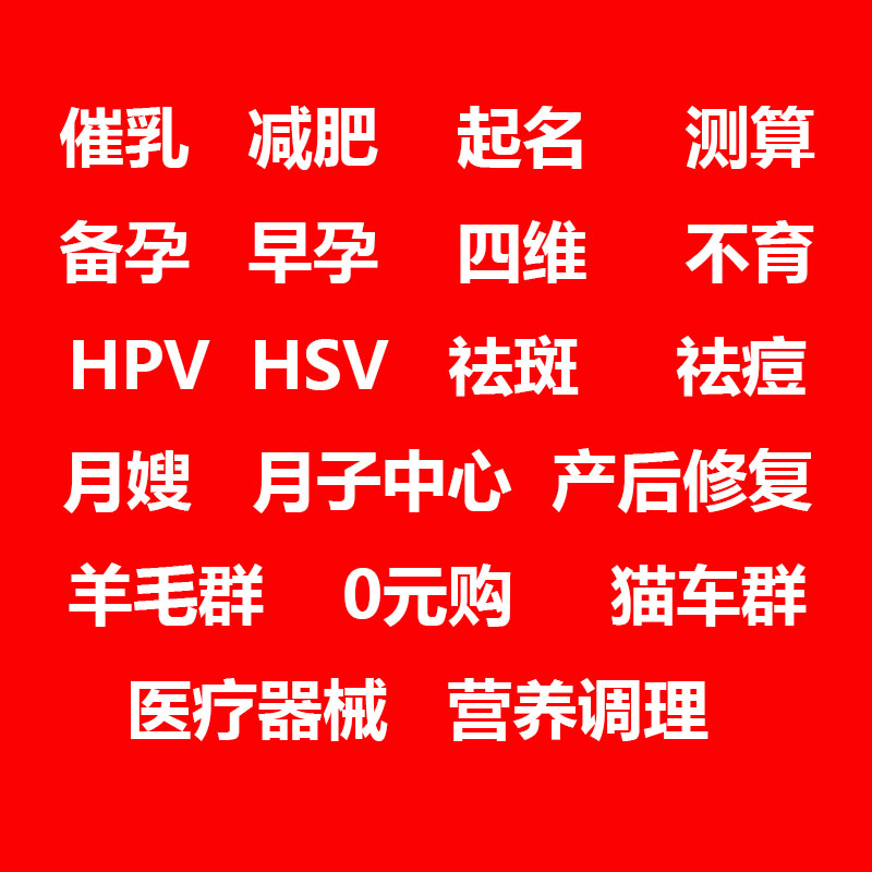 [开户托管]猫车群、羊毛群、减肥、催乳、宝宝起名、妇产妇科、祛斑祛痘祛妊娠纹推广