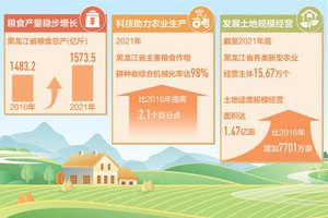 今年,黑龙江省继续抓好粮食生产,全省粮食作物计划播种面积2.185亿亩以上,比2021年增加23.1万亩以上,粮食总产稳定在1500亿斤以上。今年,黑龙江省的粮食生产有哪些特点?记者近日进行了采访。
